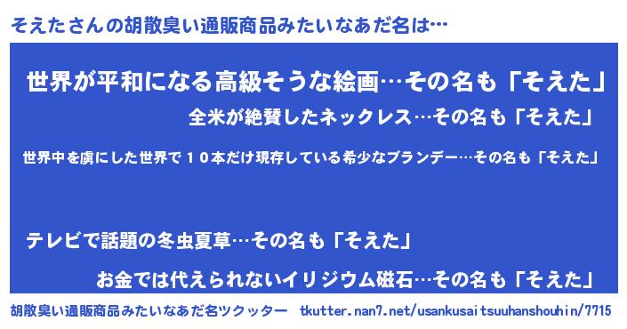 | ヘコむあだ名 | 『豆乳』『そえを』『そえにゅー』 |