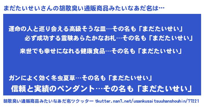 | 意味不明あだ名 | 『永久保存まだたいせい』 |