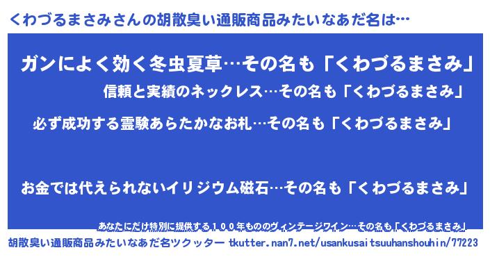 | 肩書あだ名 | 『くわづるまさみ御曹司』 |