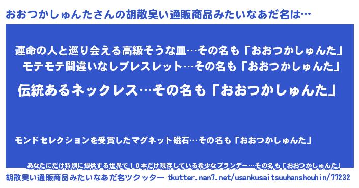 | ポケモン風あだ名 | 『ヒオオツカシュンタ』『オオツダネ』 |