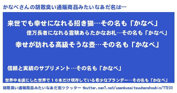| 意味不明あだ名 | 『かなべフォーエバー』『永久保存かなべ』 |