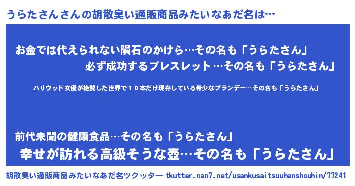 | 意味不明あだ名 | 『住所不定無職うらたさん(86歳)』 |