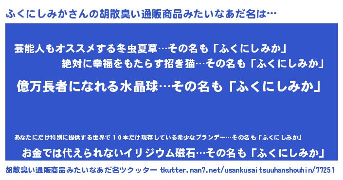 | 男性向けラノベタイトル風あだ名 | 『フクニシミカアートオンライン』 |