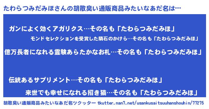 | 伝説のあだ名 | 『封印されしスナイパーたわらつみだみほ』 |
