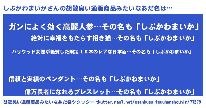 | 欧米人風あだ名 | 『ダレノガレしぶかわまいか』 |