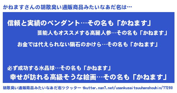 | 欧米人風あだ名 | 『ダニエルかねます』『ウサインかねます』 |