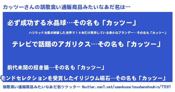 | 女子向けラノベタイトル風あだ名 | 『闇のカッツー』『カッツー恋絵巻』 |