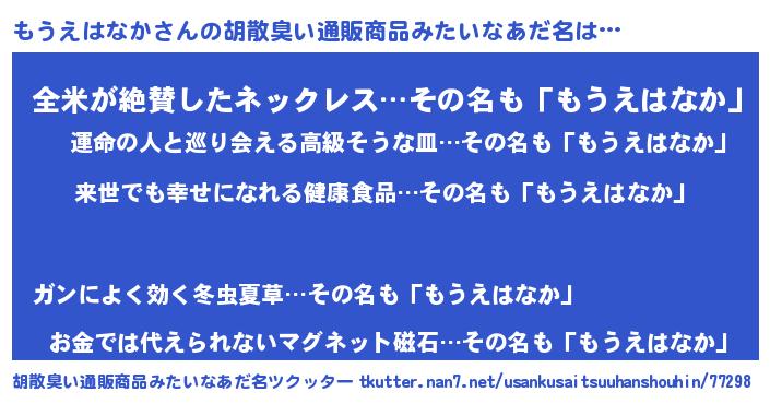 | 意味不明あだ名 | 『永久保存もうえはなか』 |