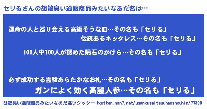 | ポケモン風あだ名 | 『セックウザ』『セリルダネ』 |