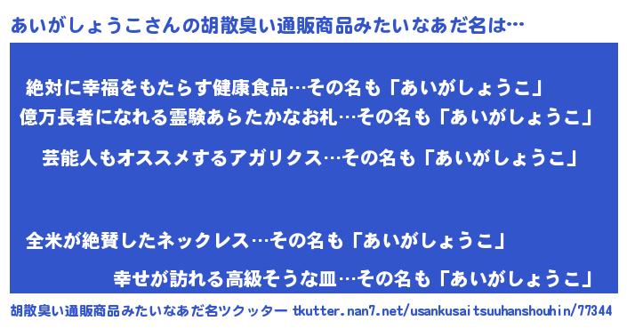 | ヘコむあだ名 | 『あいがしょうこ(笑)』『牛乳』 |