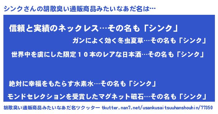 | 意味不明あだ名 | 『住所不定無職シンク(40歳)』『自称シンク』 |