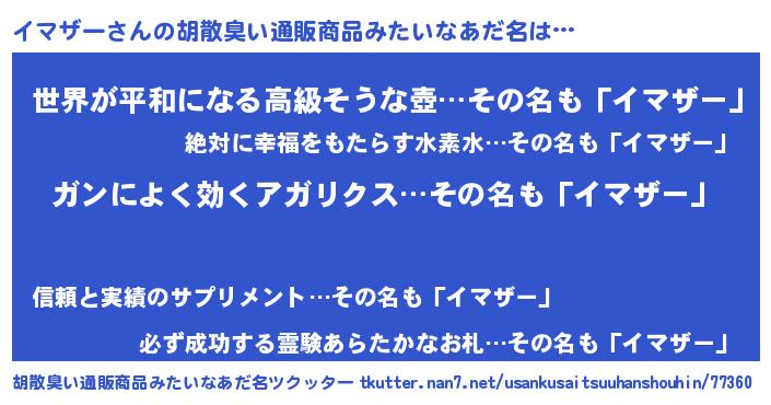 | 男性向けラノベタイトル風あだ名 | 『緋弾のイマザー』『イマザーの憂鬱』 |