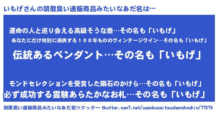 | 意味不明あだ名 | 『とにかく怪しいいもげ』 |