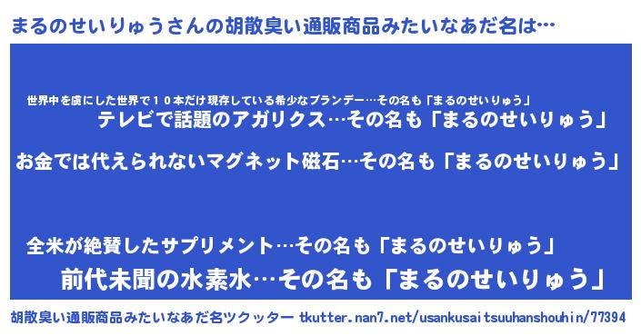 | ヘコむあだ名 | 『まるのせいりゅう(小並感)』『まるっちょ』 |