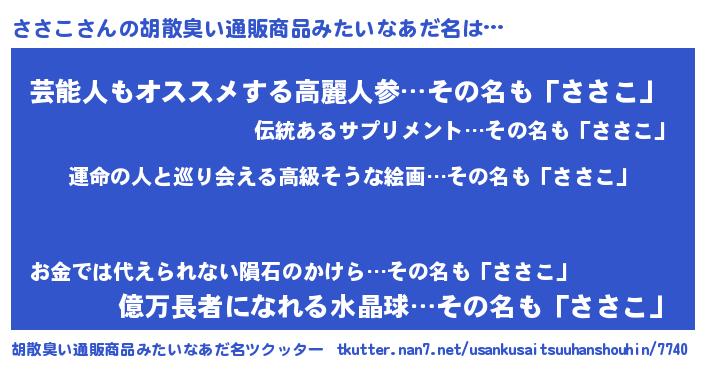 | ヒーロー風カッコイイあだ名 | 『ウルトラささこマン』『究極戦士ササコ』 |