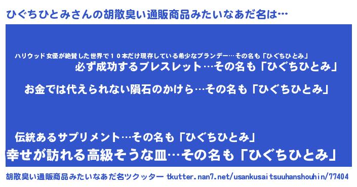 | 意味不明あだ名 | 『眠気覚ましガムひぐちひとみ味』 |
