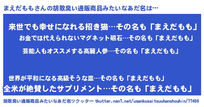 | ヘコむあだ名 | 『まえだもも(小並感)』『まえお』 |