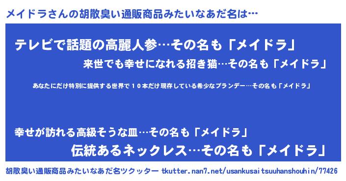 | 意味不明あだ名 | 『住所不定無職メイドラ(81歳)』 |
