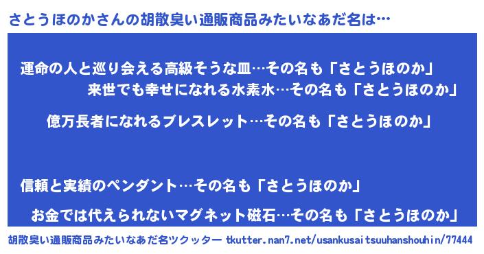 | 意味不明あだ名 | 『ペロリンさとうほのか』 |