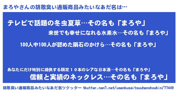 | ヘコむあだ名 | 『まろっちょ』『まろや(苦笑)』 |