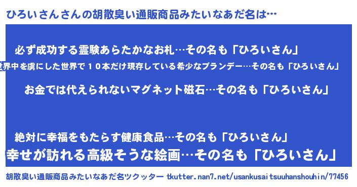 | ヘコむあだ名 | 『ひろにー』『牛乳』『ひろっぺ』 |