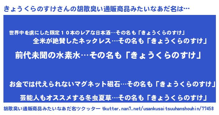 | 意味不明あだ名 | 『永久保存きょうくらのすけ』 |