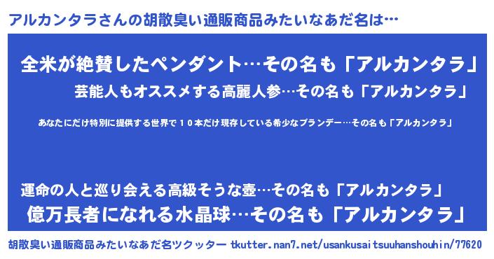 | 男性向けラノベタイトル風あだ名 | 『この素晴らしい世界にアルカンタラを!』 |