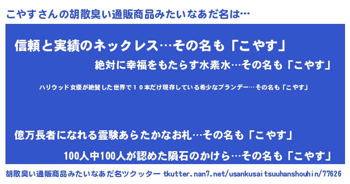 | 意味不明あだ名 | 『住所不定無職こやす(89歳)』 |