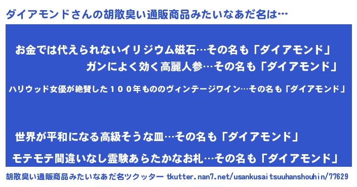 | 意味不明あだ名 | 『住所不定無職ダイアモンド(6歳)』 |