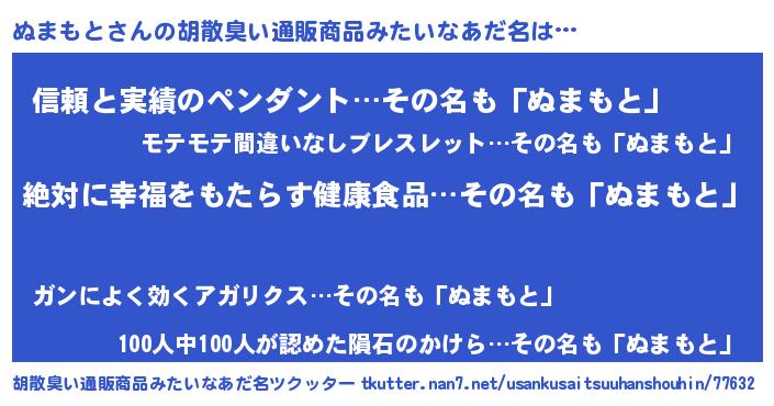 | ヘコむあだ名 | 『ぬまもと(笑)』『ぬまお』『つくし』 |