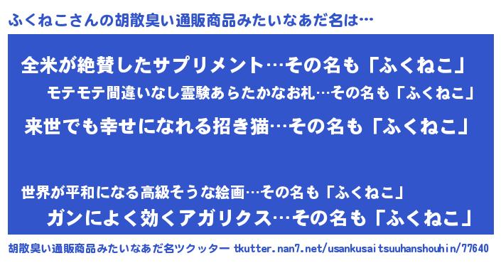 | 意味不明あだ名 | 『永久保存ふくねこ』『自称ふくねこ』 |