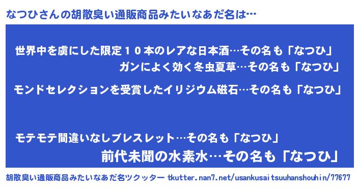 | 意味不明あだ名 | 『眠気覚ましガムなつひ味』『自称なつひ』 |