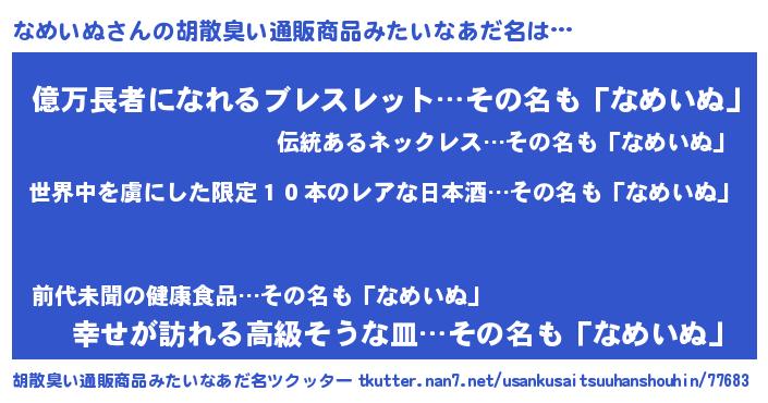 | 意味不明あだ名 | 『住所不定無職なめいぬ(43歳)』 |