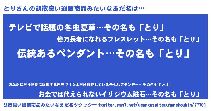 | ヘコむあだ名 | 『とりぷりん』『とりっふぃ~』 |