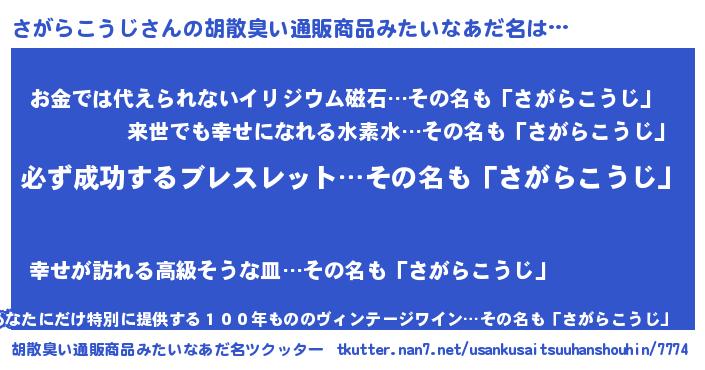 | ヘコむあだ名 | 『さがふぇ~』『さがらこうじ(爆)』 |