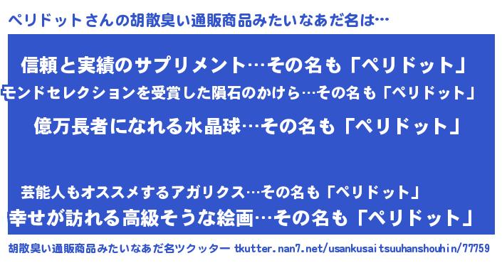 | 意味不明あだ名 | 『ペロリンペリドット』 |