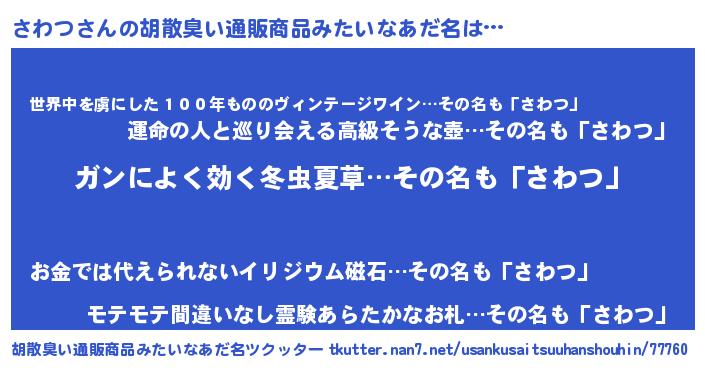 | 意味不明あだ名 | 『自称さわつ』『たけのこ科さわつ属』 |