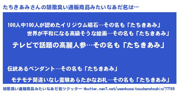 | 恥ずかしいあだ名 | 『タチキアミデラックス』『たちっちょ』 |