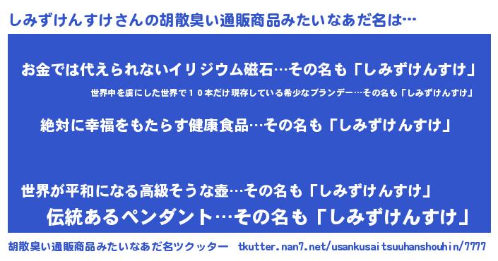 | 意味不明あだ名 | 『永久保存しみずけんすけ』 |