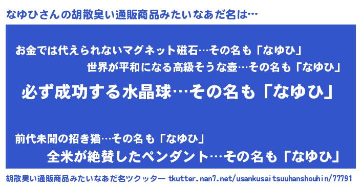 | ヘコむあだ名 | 『なゆにゅー』『なゆを』『レバニラ』 |