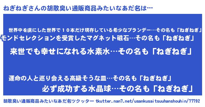 | ヘコむあだ名 | 『ねぎねぎ(遠い目)』『ねぎっふぃ~』 |