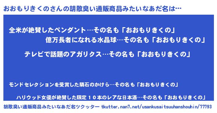 | 意味不明あだ名 | 『自称おおもりきくの』 |