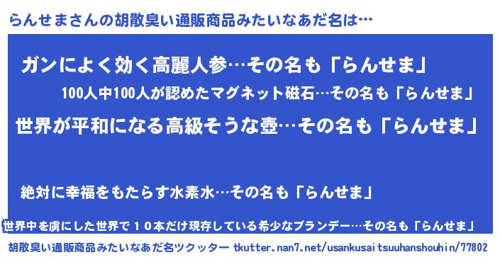 | ヘコむあだ名 | 『なまこ酢』『らんせま(笑)』 |