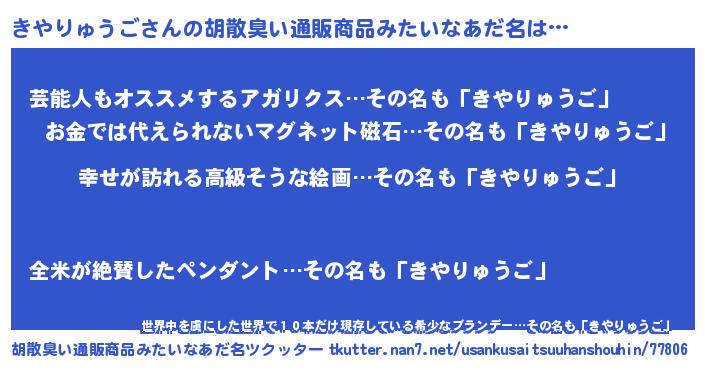 | ヒーロー風カッコイイあだ名 | 『ウルトラきやりゅうごマン』 |