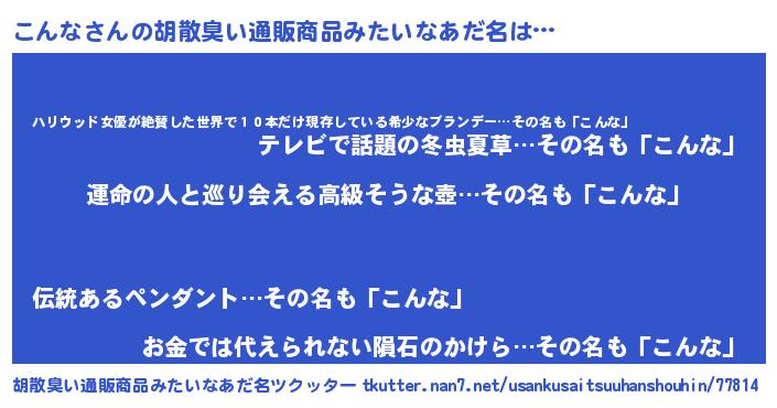 | 欧米人風あだ名 | 『アンジェラ・こんな』『ダニエルこんな』 |