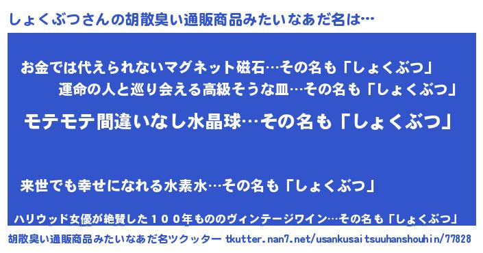 | ヒーロー風カッコイイあだ名 | 『スーパーショクブツ』『仮面ショダー』 |