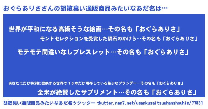| 恥ずかしいあだ名 | 『プリティーおぐらありさ』『おぐっちょ』 |