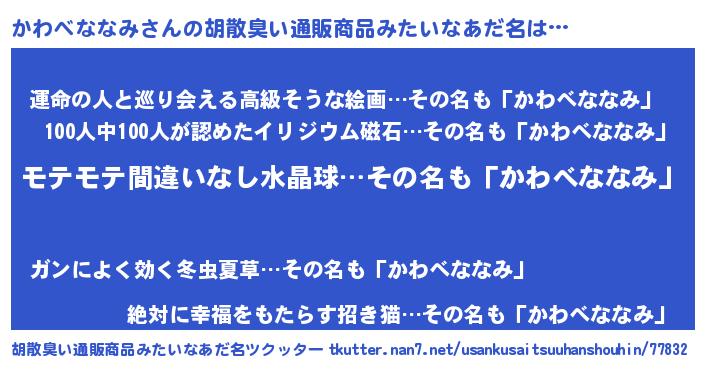 | ヒーロー風カッコイイあだ名 | 『スーパーカワベナナミ』 |