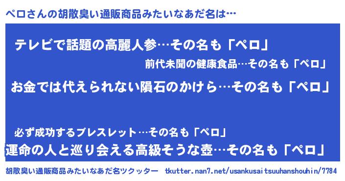 | ヒーロー風カッコイイあだ名 | 『慈愛の使者ペロ』『サイバー戦士ペロ』 |
