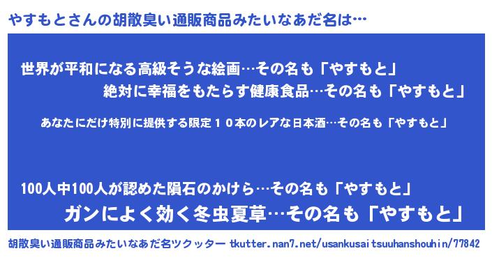 | 意味不明あだ名 | 『住所不定無職やすもと(65歳)』 |